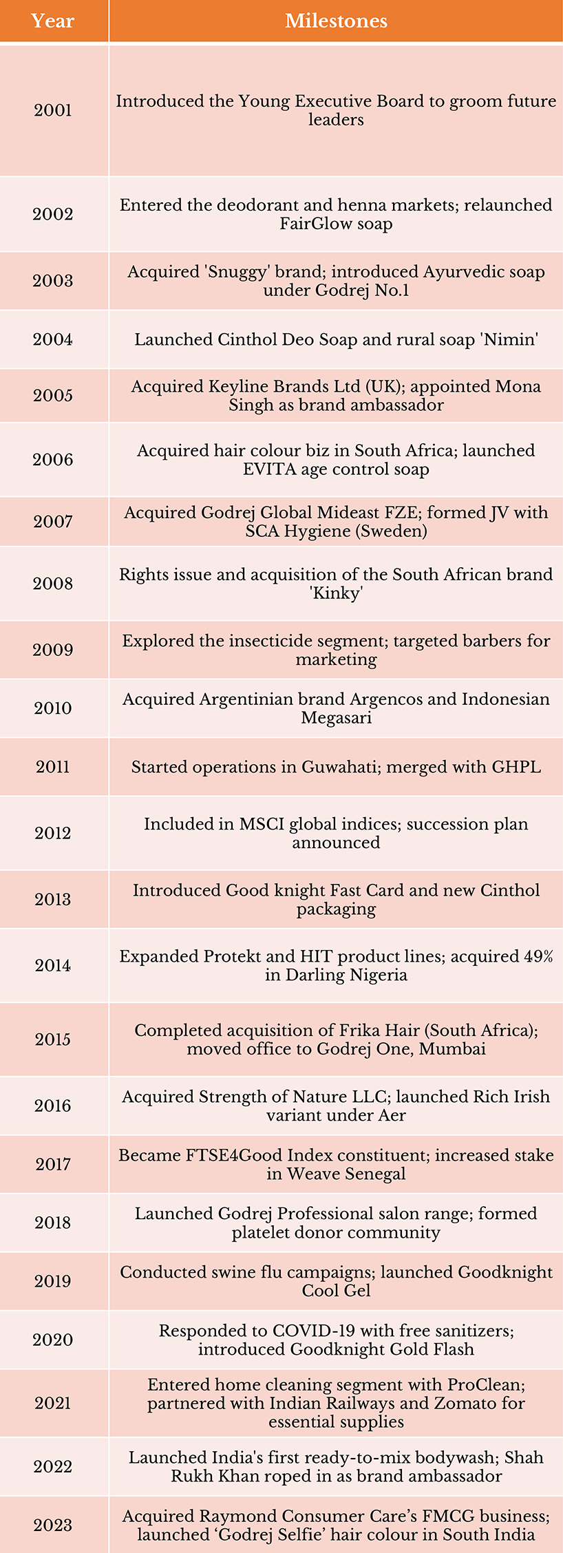 GCPL has evolved rapidly over the past two decades. Below is the rewritten table showcasing major milestones: