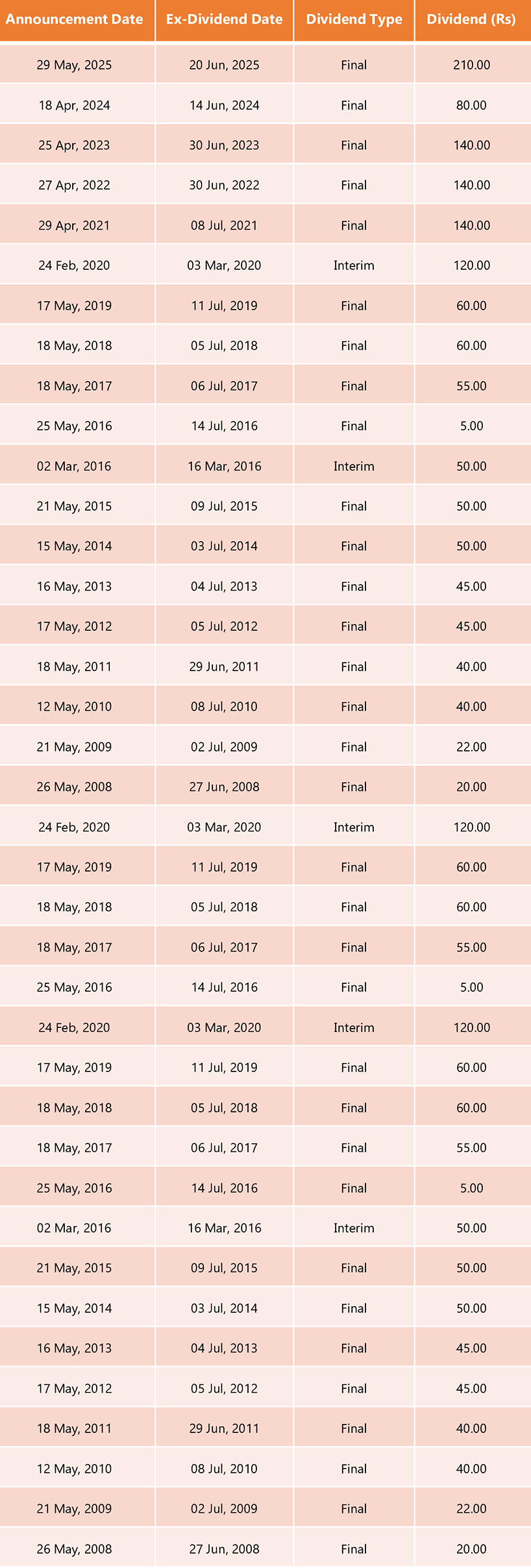 Dividend History Table
